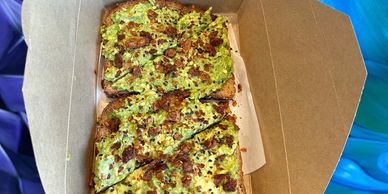Smashed organic avocado blended with zesty lemon juice, avocado oil, pink Himalayan salt, and freshly cracked black pepper. Served atop hearty multigrain toast and finished with a sprinkle of crushed red pepper flakes and black sesame seeds.